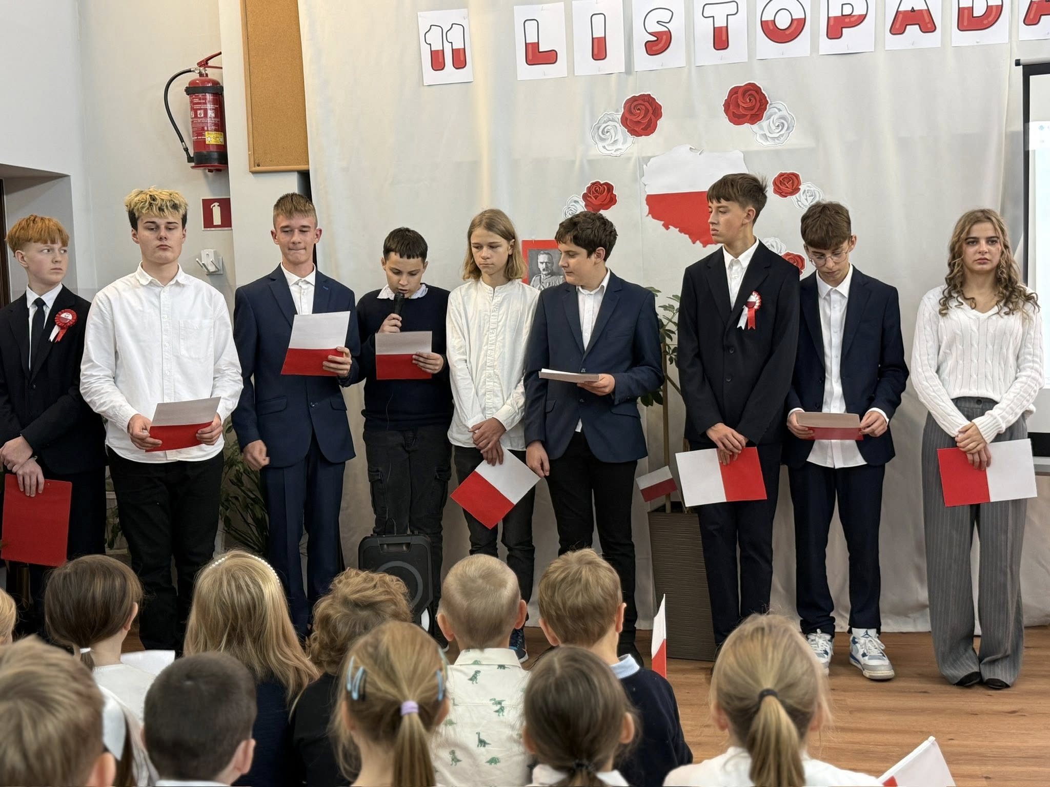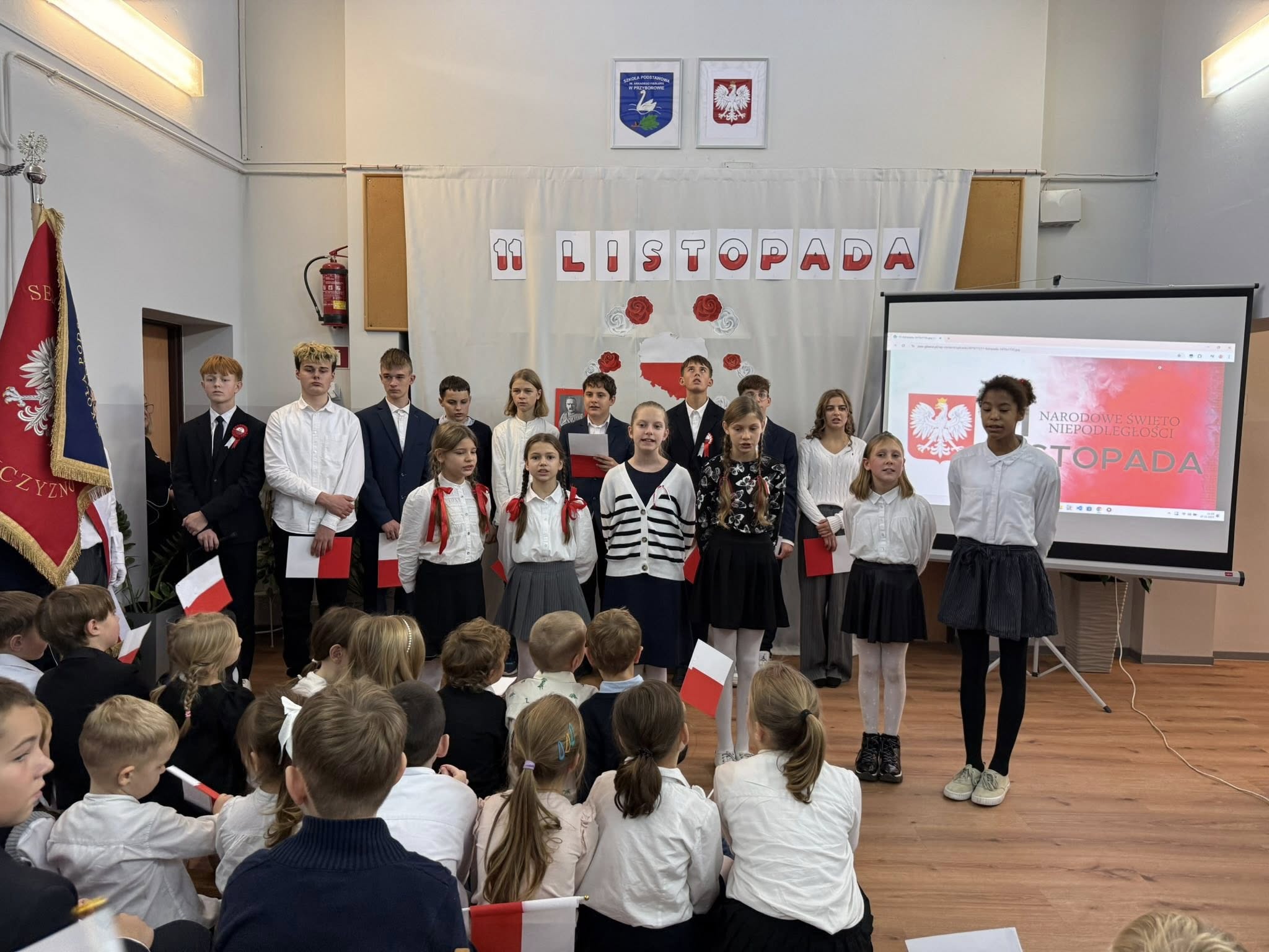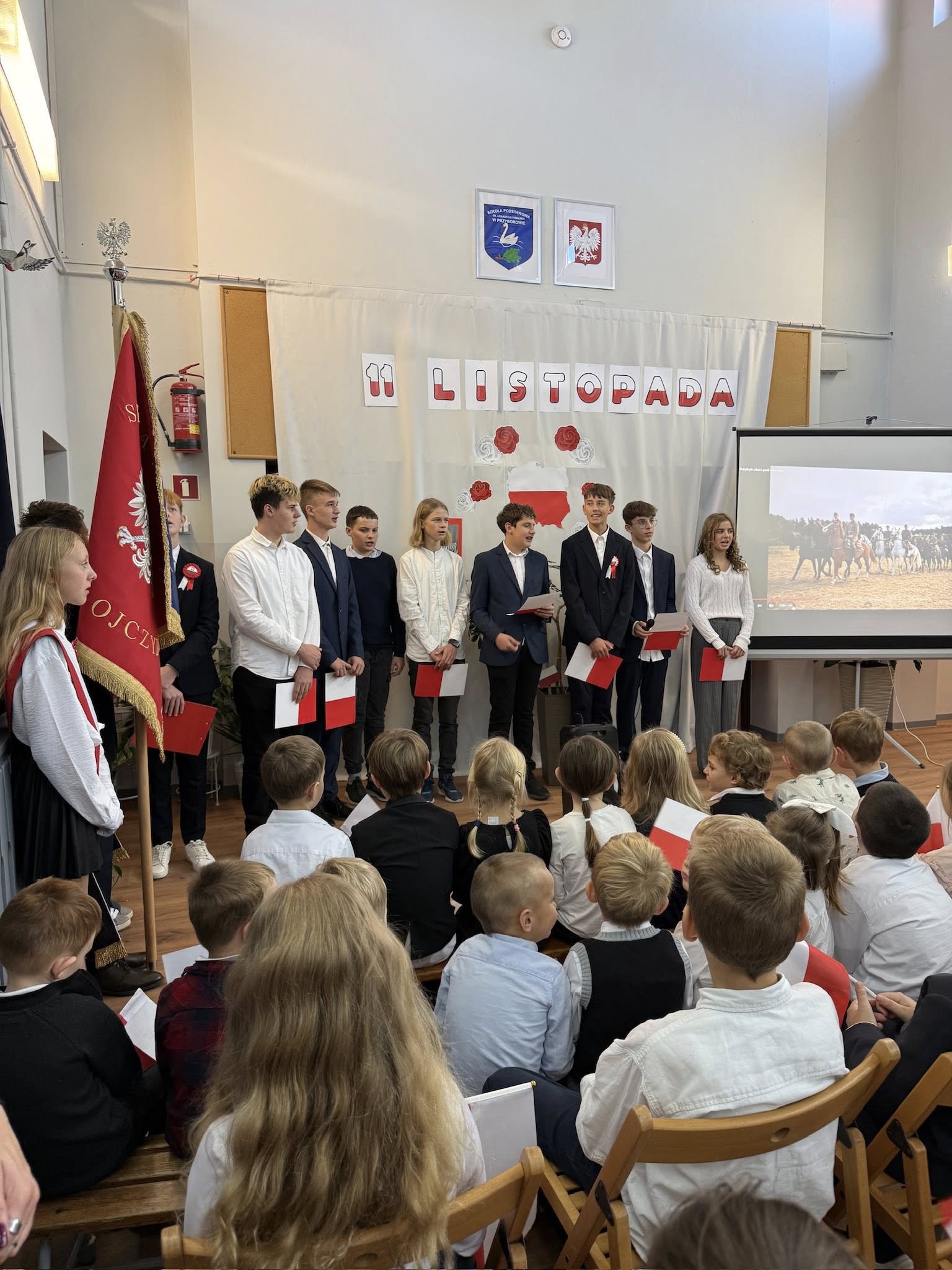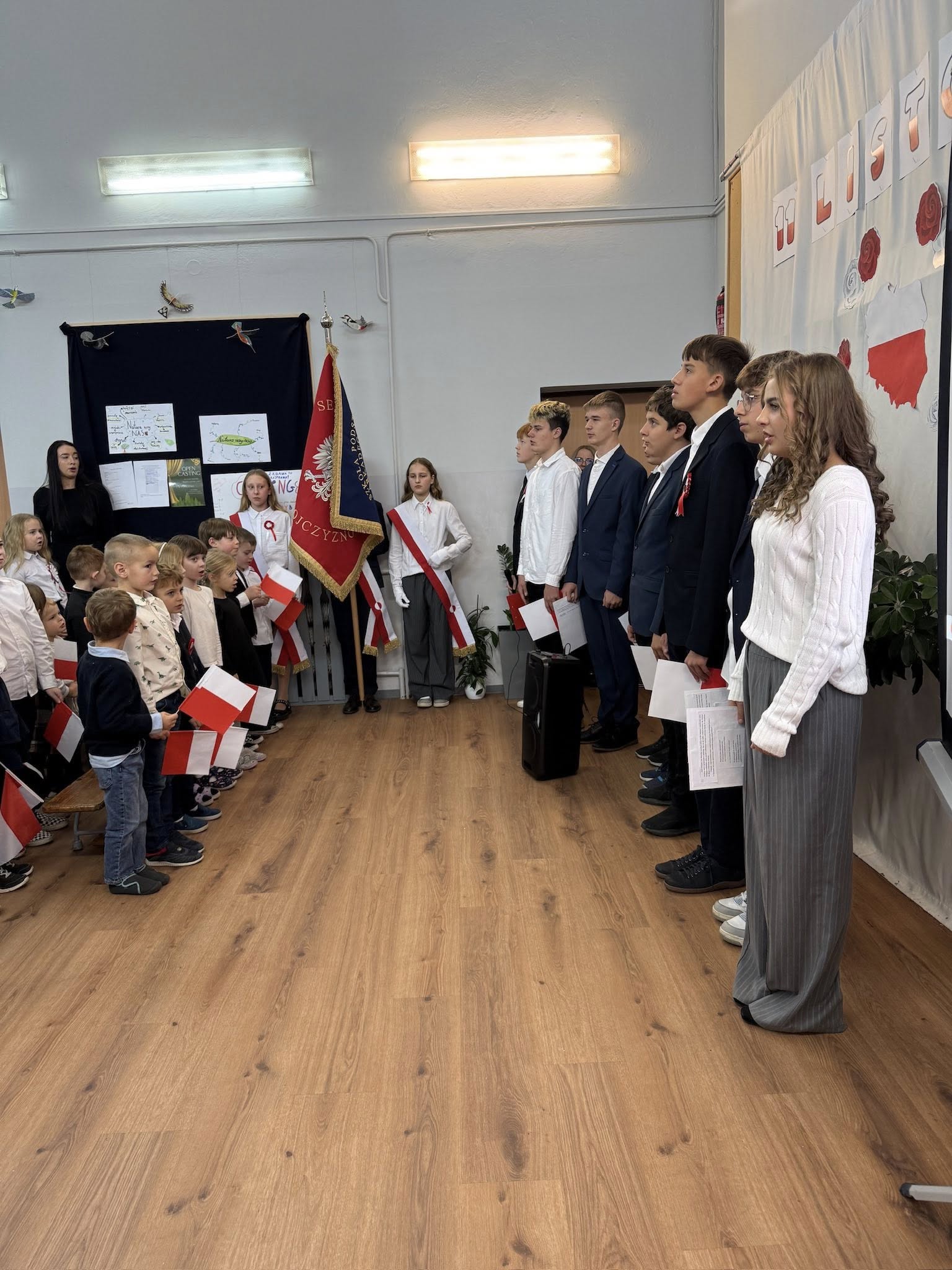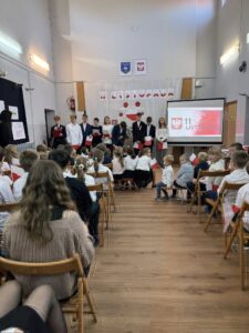 Uroczystość przygotowała klasa 8, przypominając nam, jak ważne są wolność, ojczyzna i pamięć o historii naszego kraju. Nie zabrakło pięknych pieśni patriotycznych, które śpiewali uczniowie, przedszkolaki oraz cała społeczność szkolna.
