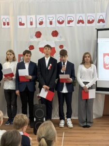 Z tej okazji już w piątek w naszej szkole odbył się apel, podczas którego wspólnie uczciliśmy 107. rocznicę odzyskania przez Polskę niepodległości.