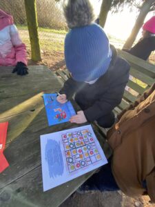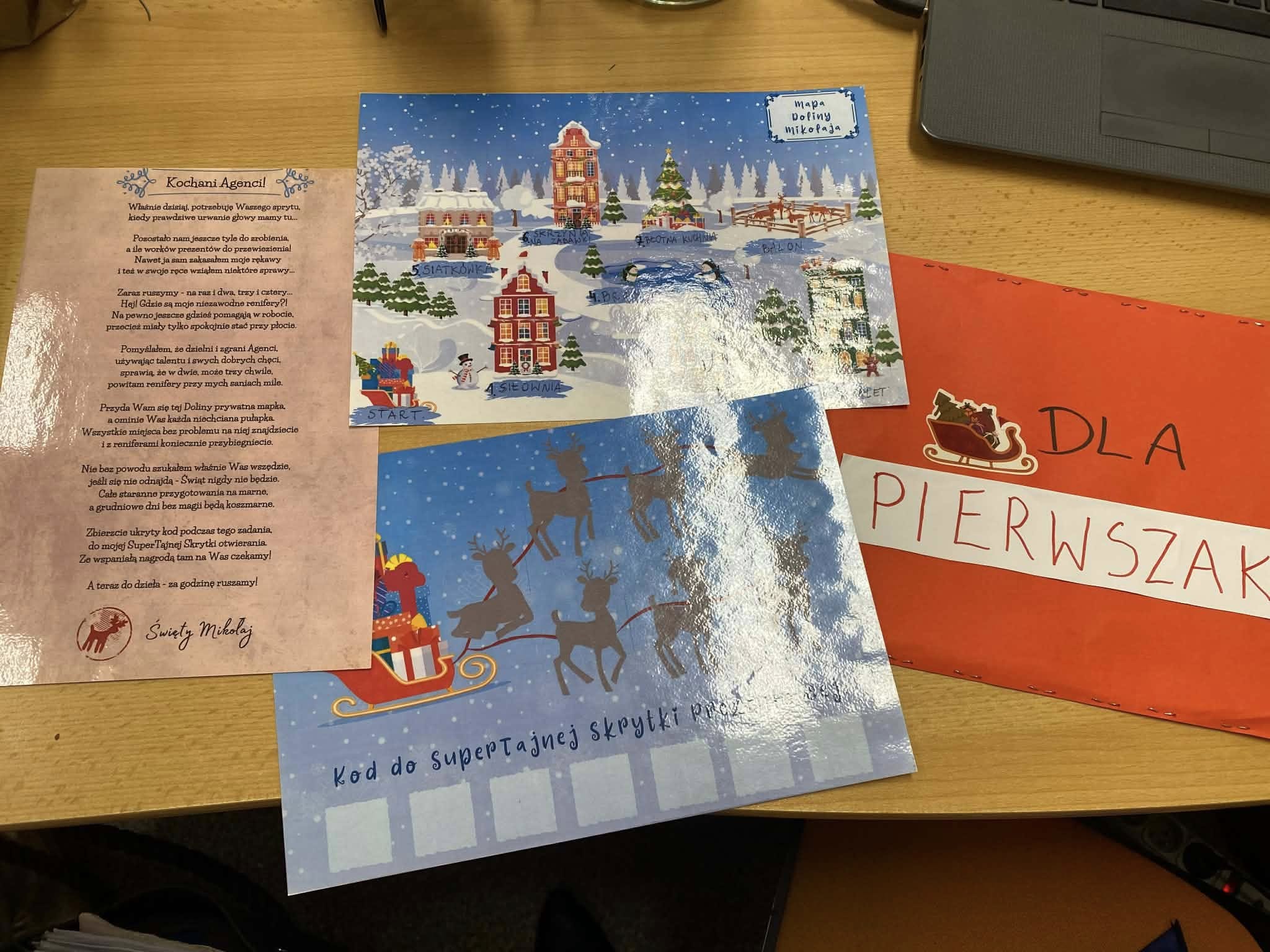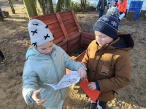 Pierwszaki podczas zajęć outdoorowych wcieliły się w rolę małych agentów specjalnych. Ich zadanie było ściśle tajne i niezwykle odpowiedzialne… odnaleźć wszystkie zagubione renifery Świętego Mikołaja