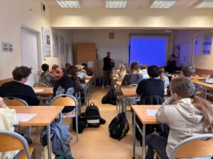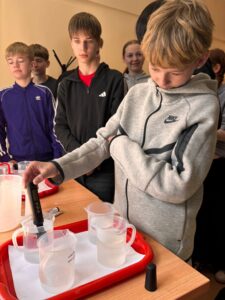 Podczas wizyty wzięli udział w interesującym wykładzie pt. „Jak zmienia się jakość wody w rzekach i jeziorach w naszym otoczeniu?”, który w przystępny i angażujący sposób przybliżył im zagadnienia związane z ochroną środowiska oraz znaczeniem czystej wody w ekosystemie. Następnie uczniowie uczestniczyli w warsztatach „Pomiary jakości wody w rzekach i jeziorach”, prowadzonych przez mgr inż. Łukasza Bryla oraz prof. UPP dr hab. inż., gdzie mogli samodzielnie poznać metody badawcze i wcielić się w rolę młodych naukowców.